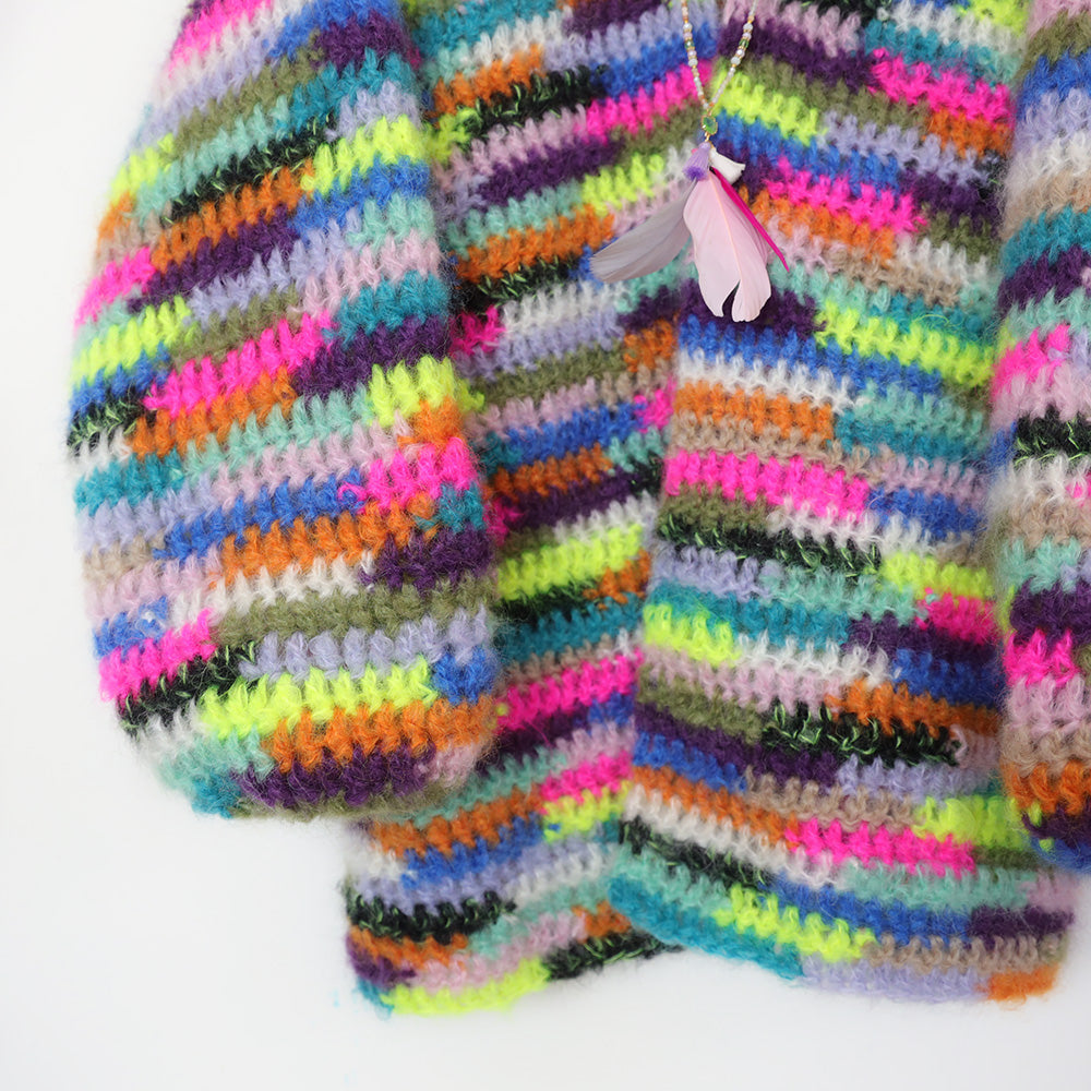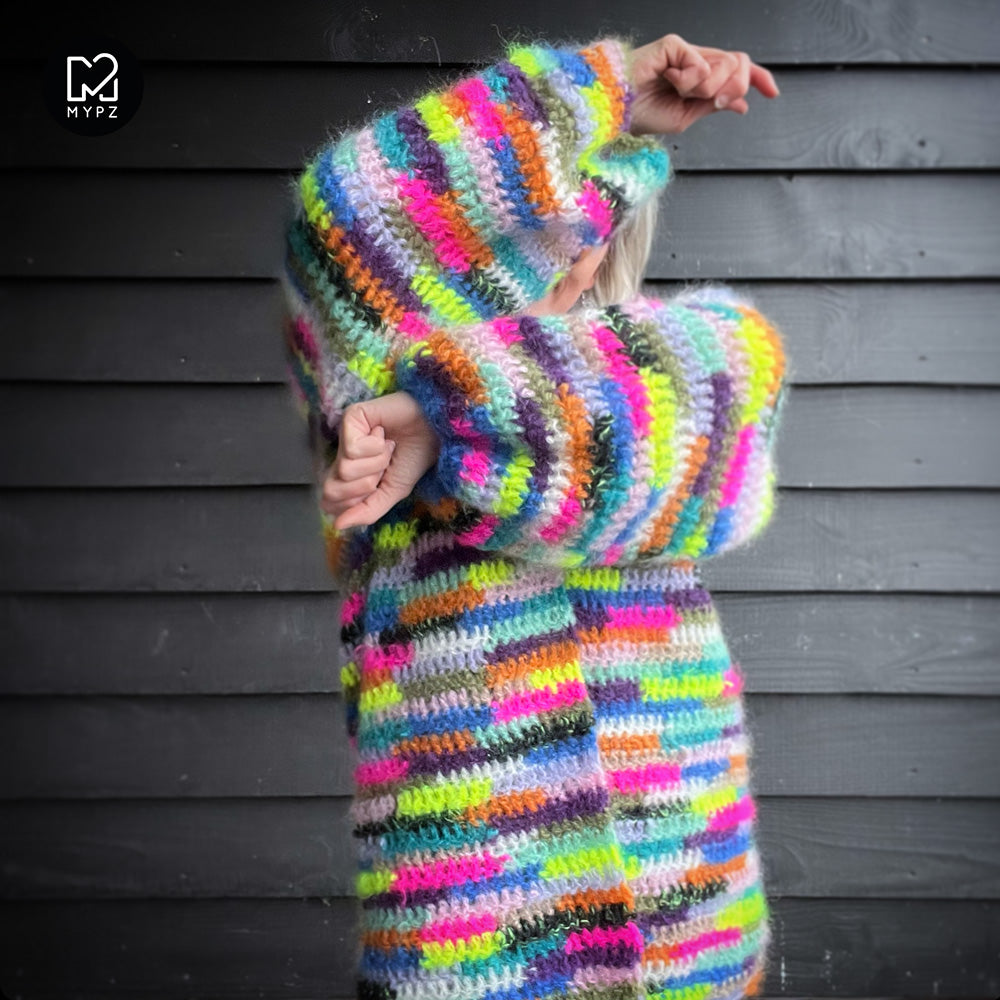 Crochet kit - Chunky Mohair cardigan Groovy Rainbow (ENG-NL)