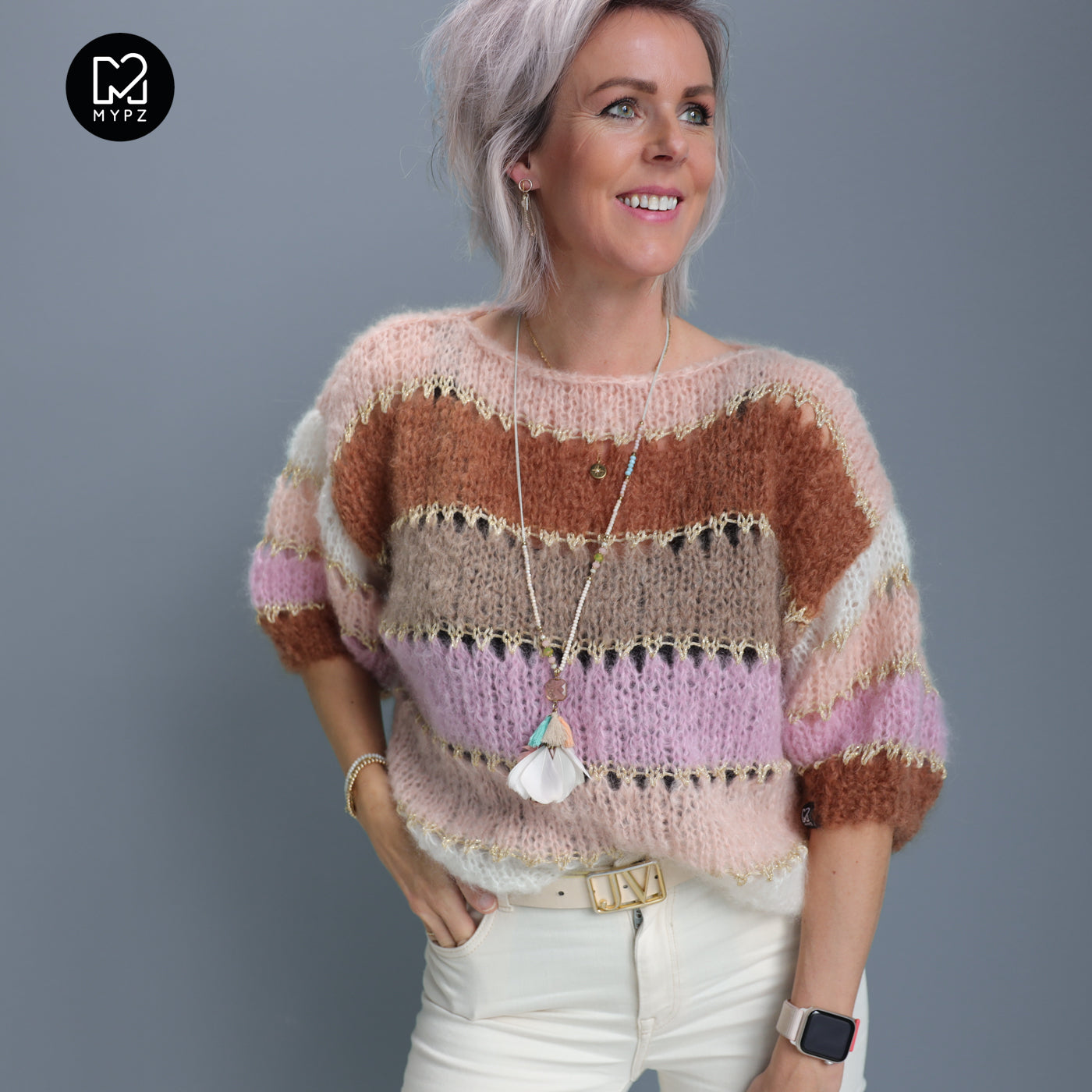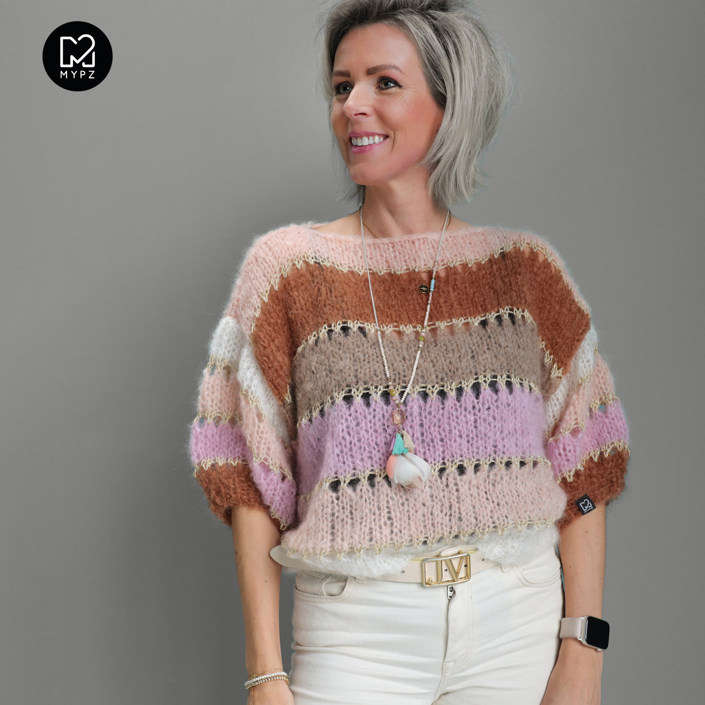 This is a handmade knit made by MYPZ in The Netherlands. Each cardigan or sweater is a unique piece and we take a lot of time and care to create these beautiful products. This beautiful sweater is made of a high quality mohair and does not pill. It is very light, warm and comfortable. These brushed yarns may shed a little but after a while, this will subside.